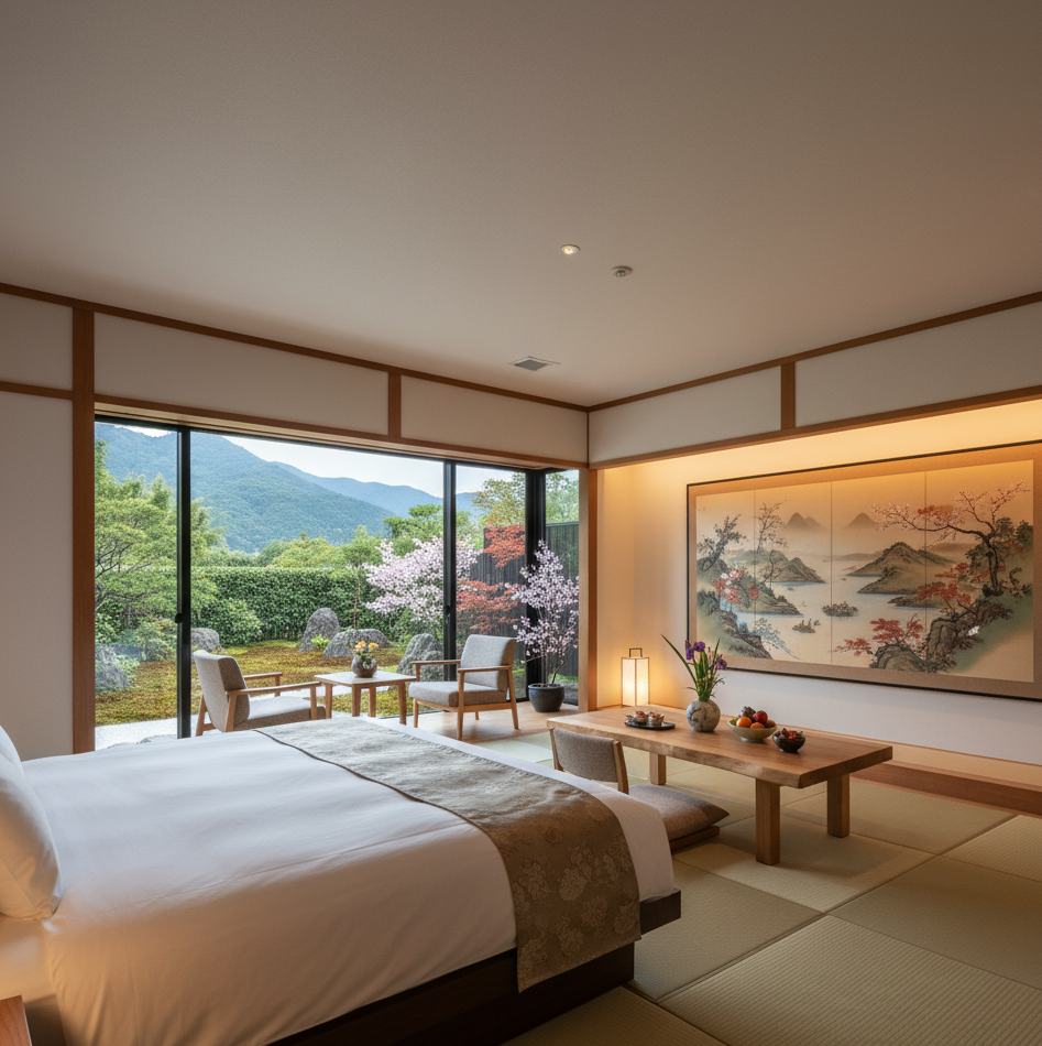 移ろいゆく季節の美しさを五感で味わい、千年の都の歴史と文化が息づく空間で、心身ともに満たされる滞在を提供する。「伝統と革新」をテーマに、日本の美意識と現代の快適さを融合させた、唯一無二のラグジュアリー体験をお楽しみください。