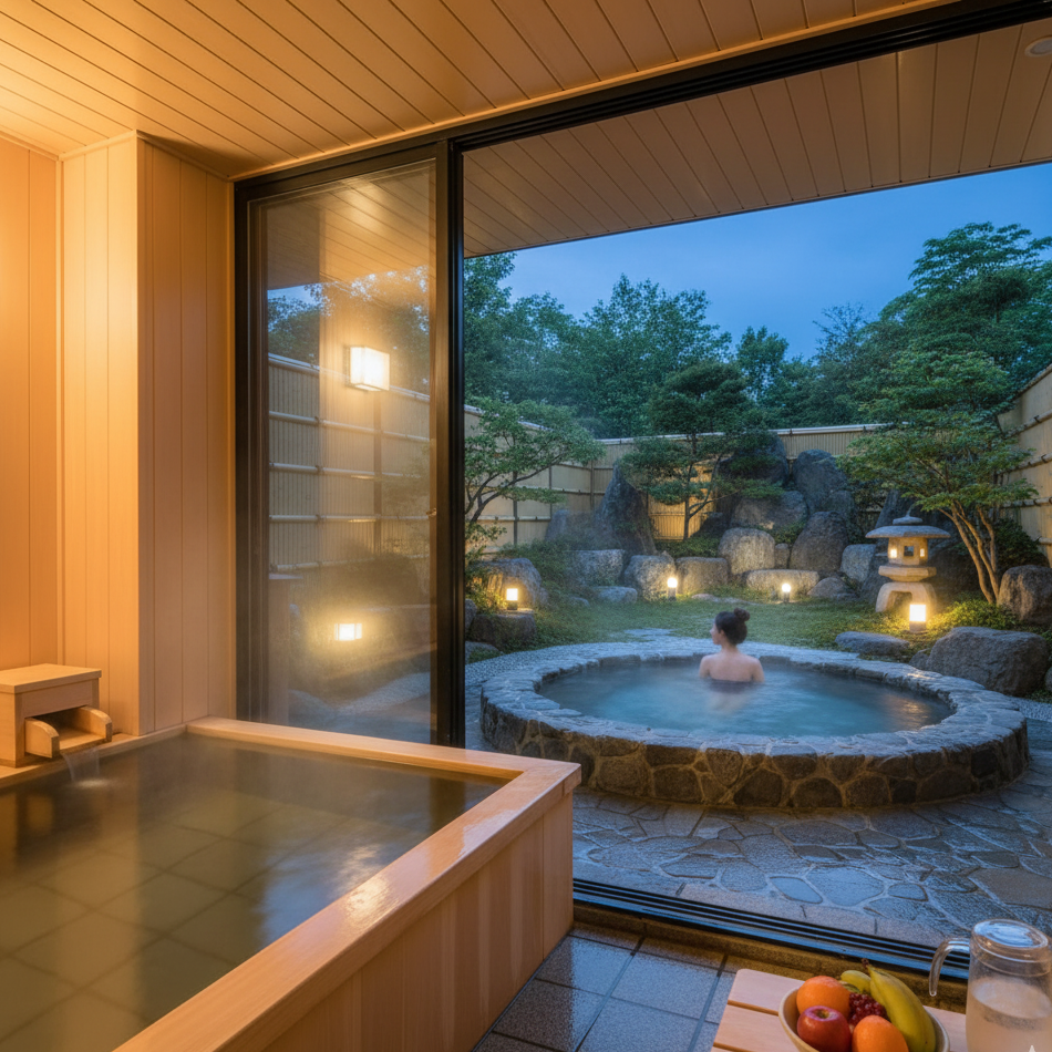 全室がスイート仕様で、窓からは手入れの行き届いた日本庭園や、遠く東山の稜線が望めます。客室には、露天風呂が備え付けられている部屋も多く、自然の音に耳を傾けながら湯浴みを愉しめます。