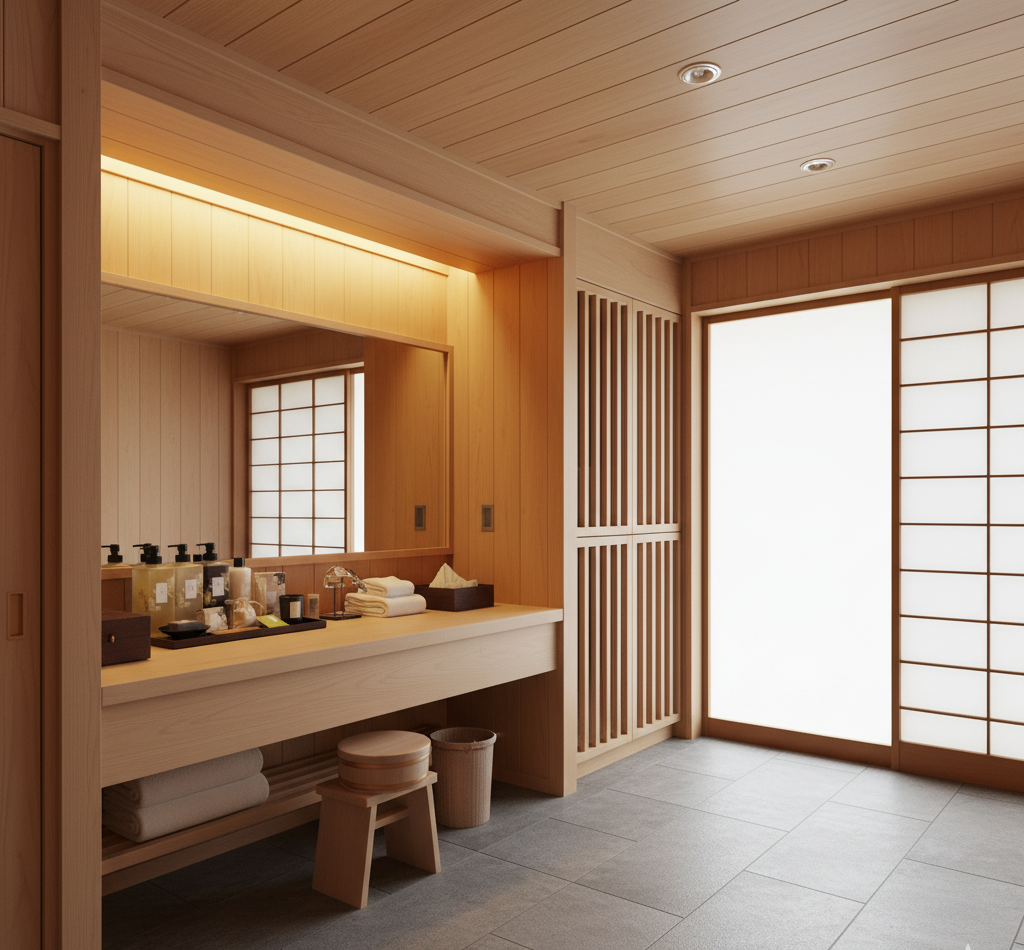 | 東山を一望する檜のプライベート露天風呂 | ホテルオリジナルスキンケアセット |