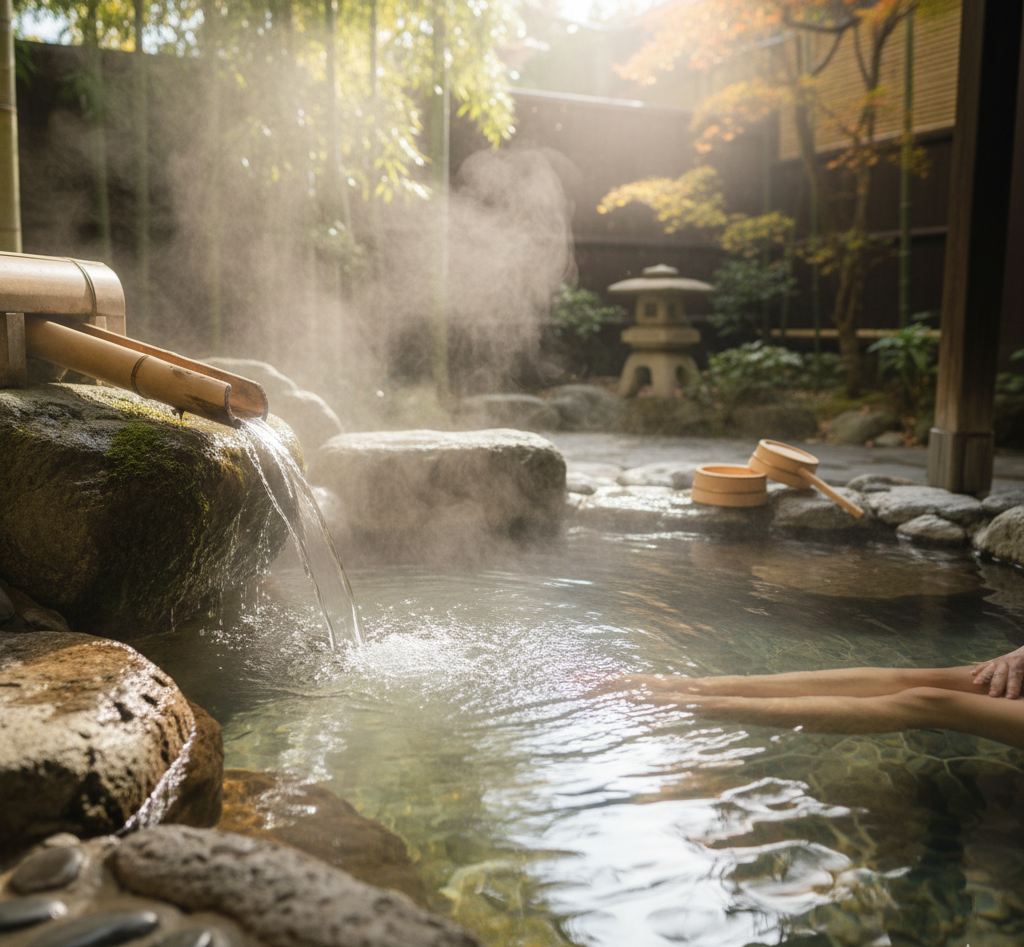 源泉かけ流しの天然温泉。肌に優しい湯が旅の疲れを癒す。
