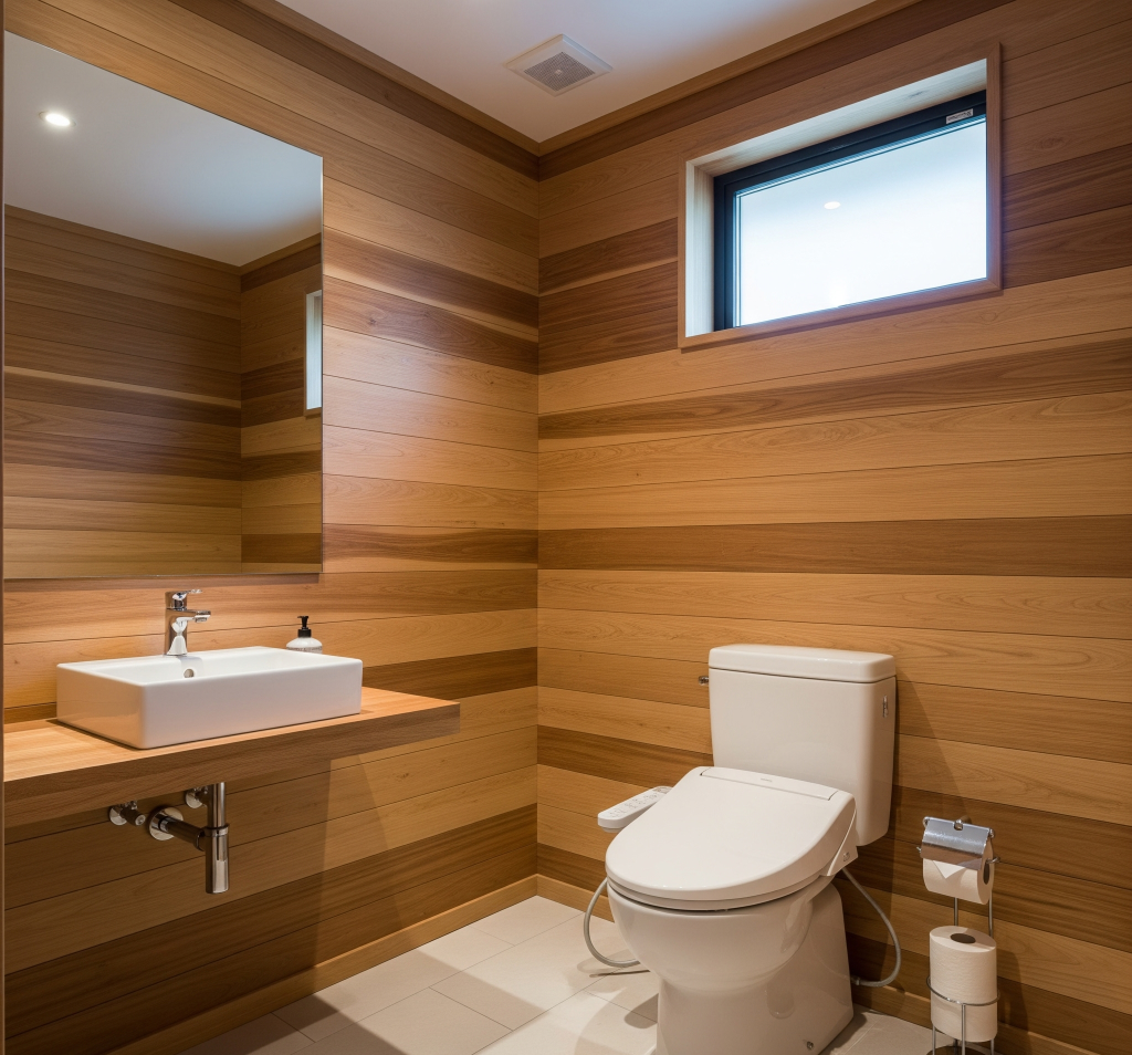 床は江戸時代の名残を残した石とタイルの作りになっており寒い冬や暑い夏でも快適に使えるようにエアコン機能や床暖房がついております。