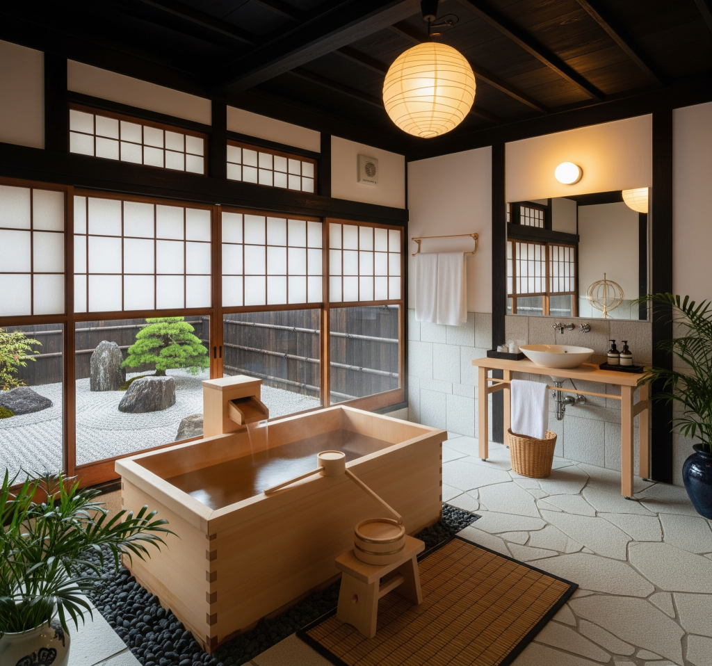 お風呂はすべてが木製で木の良い香りが漂う高級感のある作りになっています。